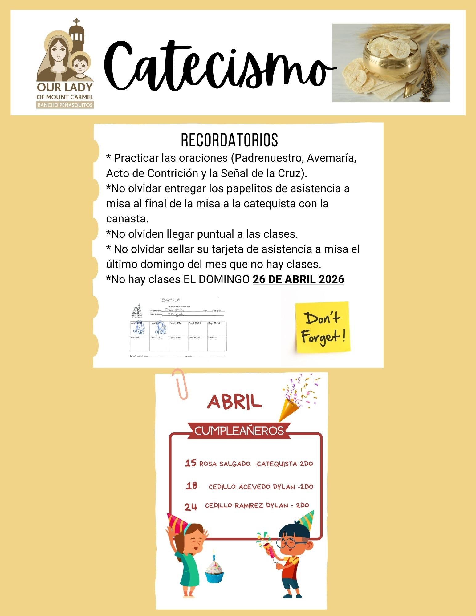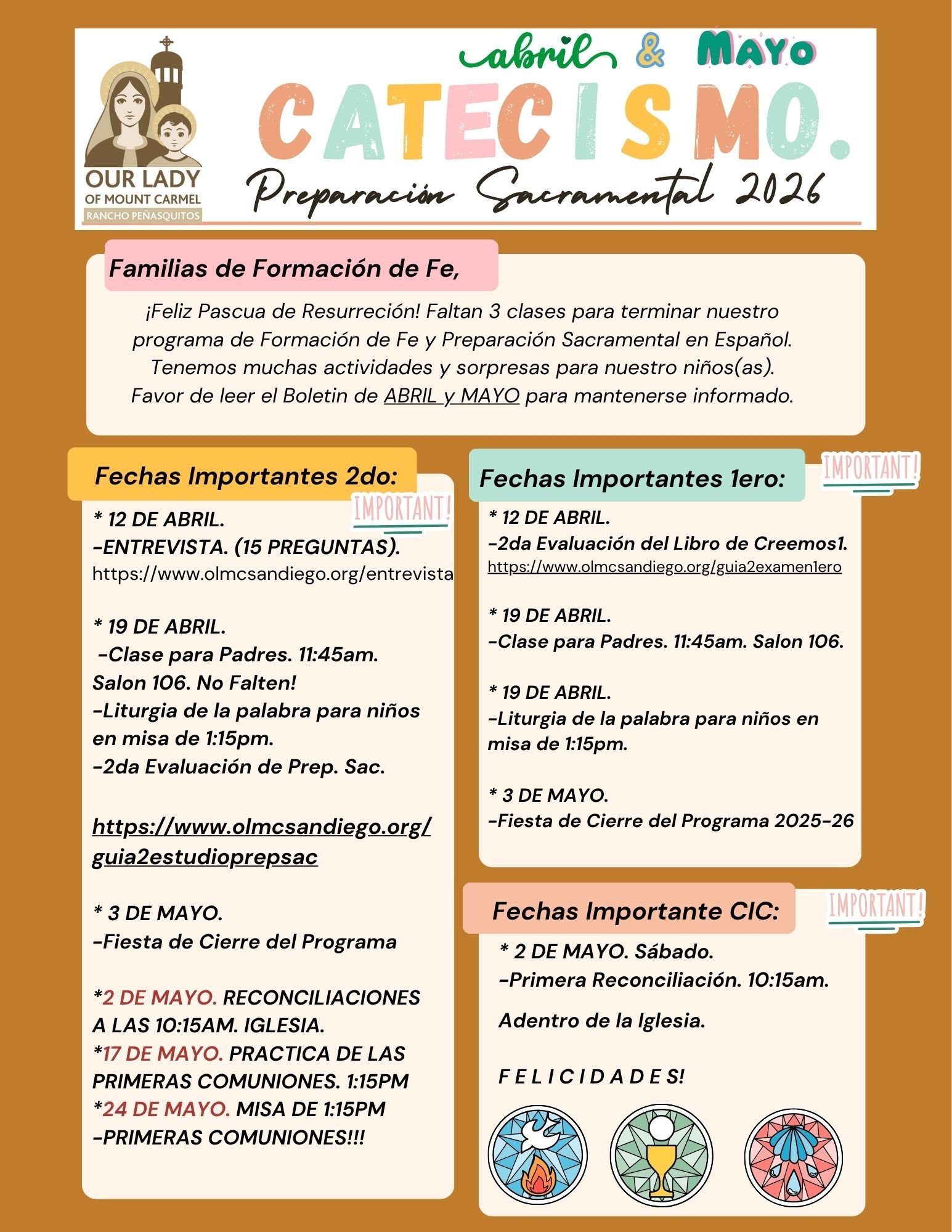 Noticias importantes de Formación de Fe y Preparación Sacramental
