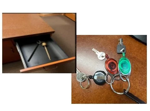El llavero NEGRO se encuentra en la Sacristía de Vestimentas del Clero. ¡NUEVO! Las llaves están codificadas por colores: ROJO para la caja de madera de la Rueda; VERDE para el Buzón de la Pared; NEGRO para la Caja Fuerte.